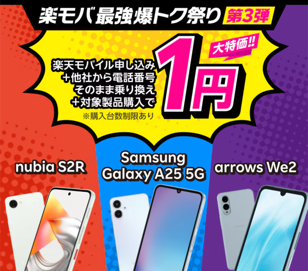 まず、楽天モバイルでスマホが1円で買える条件から。